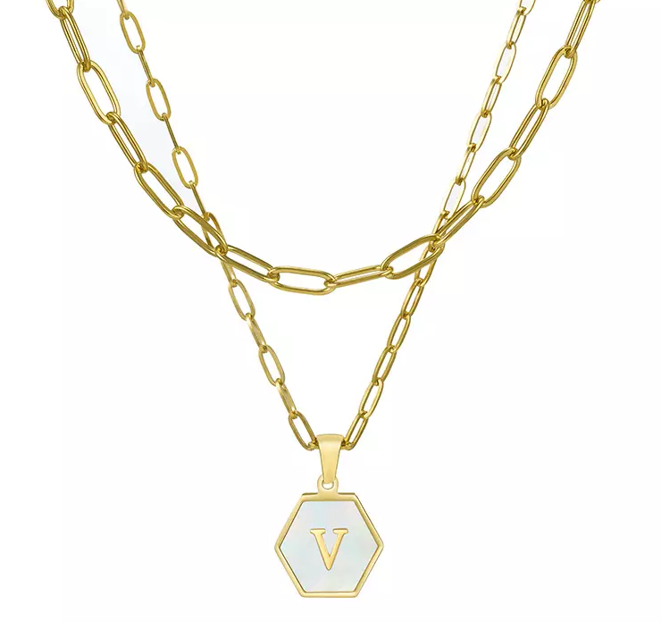 Двойное колье с перламутром Alphabet – V