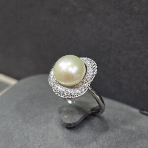 Кольцо передаёт ощущение сверкающей свежести, игру света в бриллиантах и кристальную чистоту жемчуга.