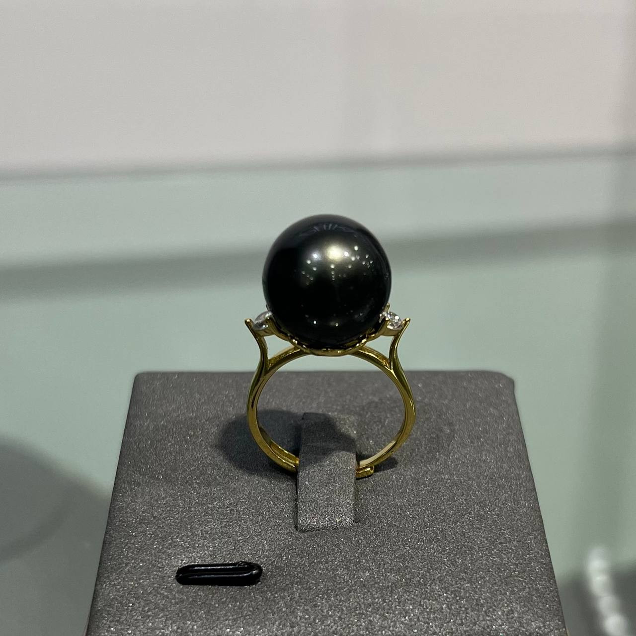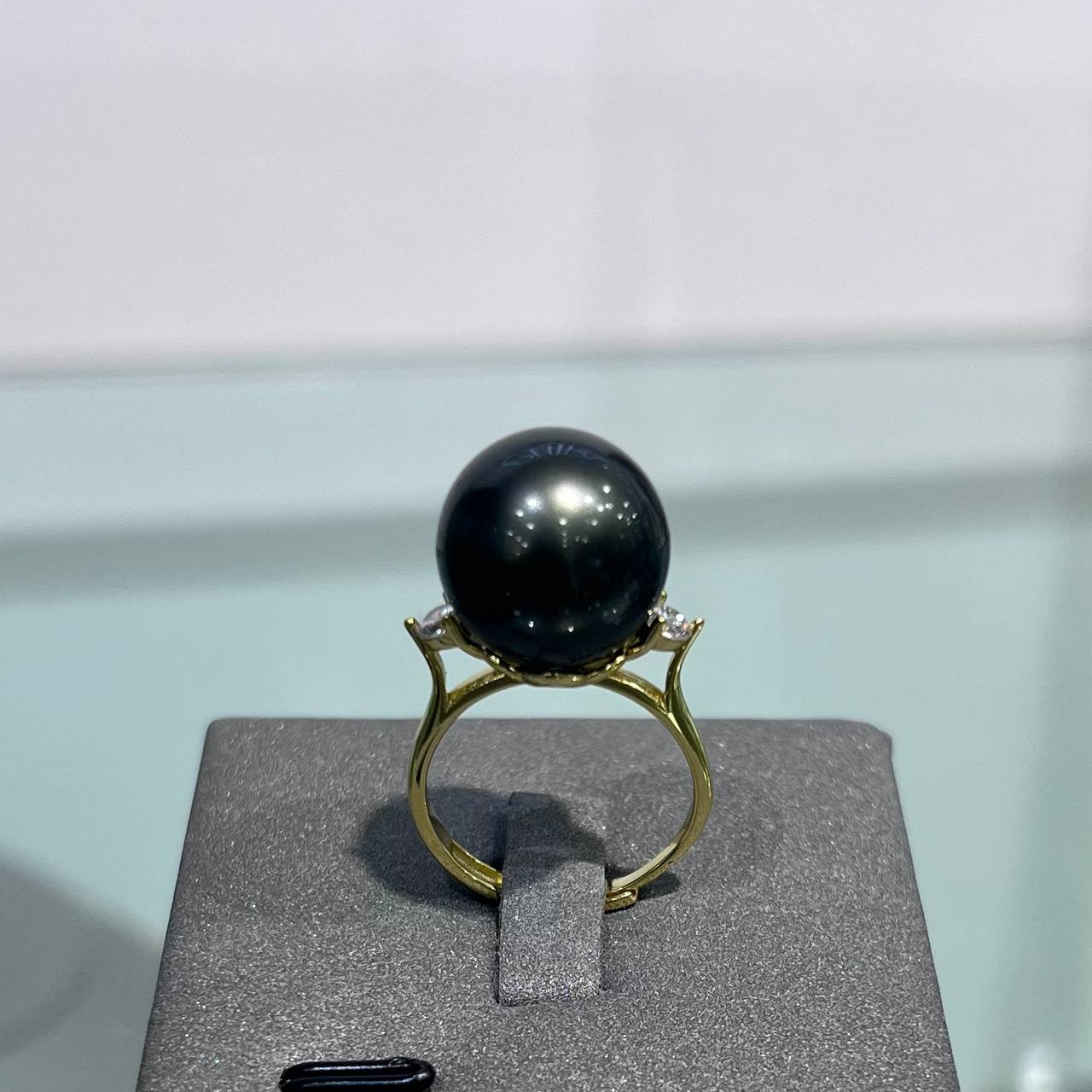 Классическое кольцо c темным Shell Pearl 14 мм золото Vermeil