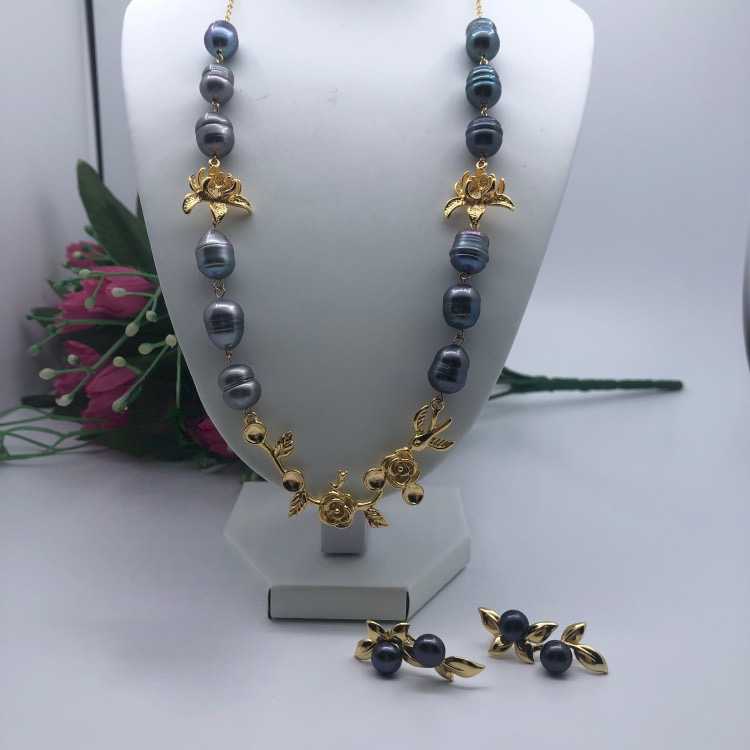 Сет Handmade украшений в Бохо стиле с черным жемчугом – колье и серьги