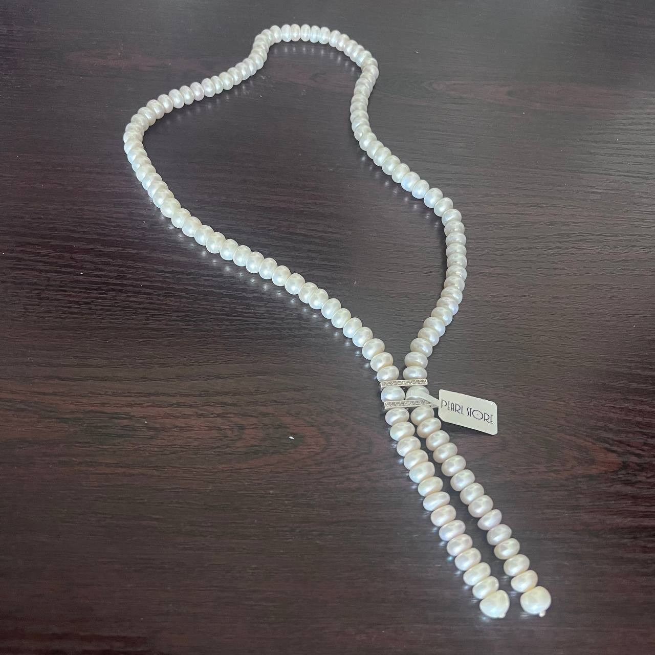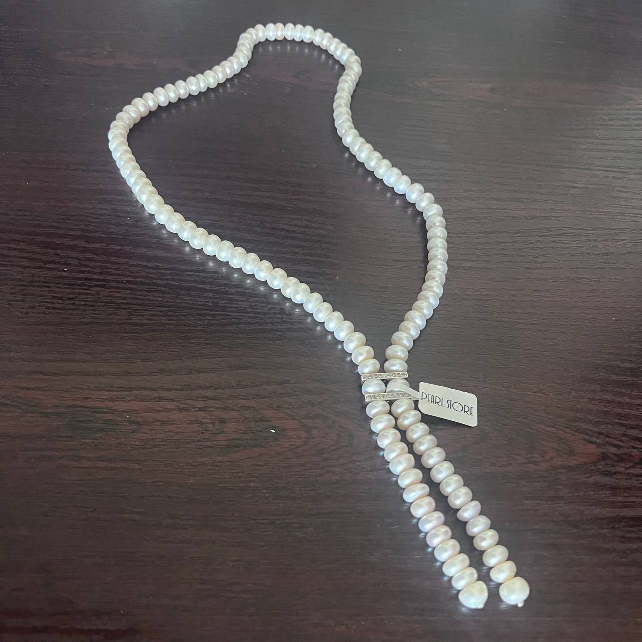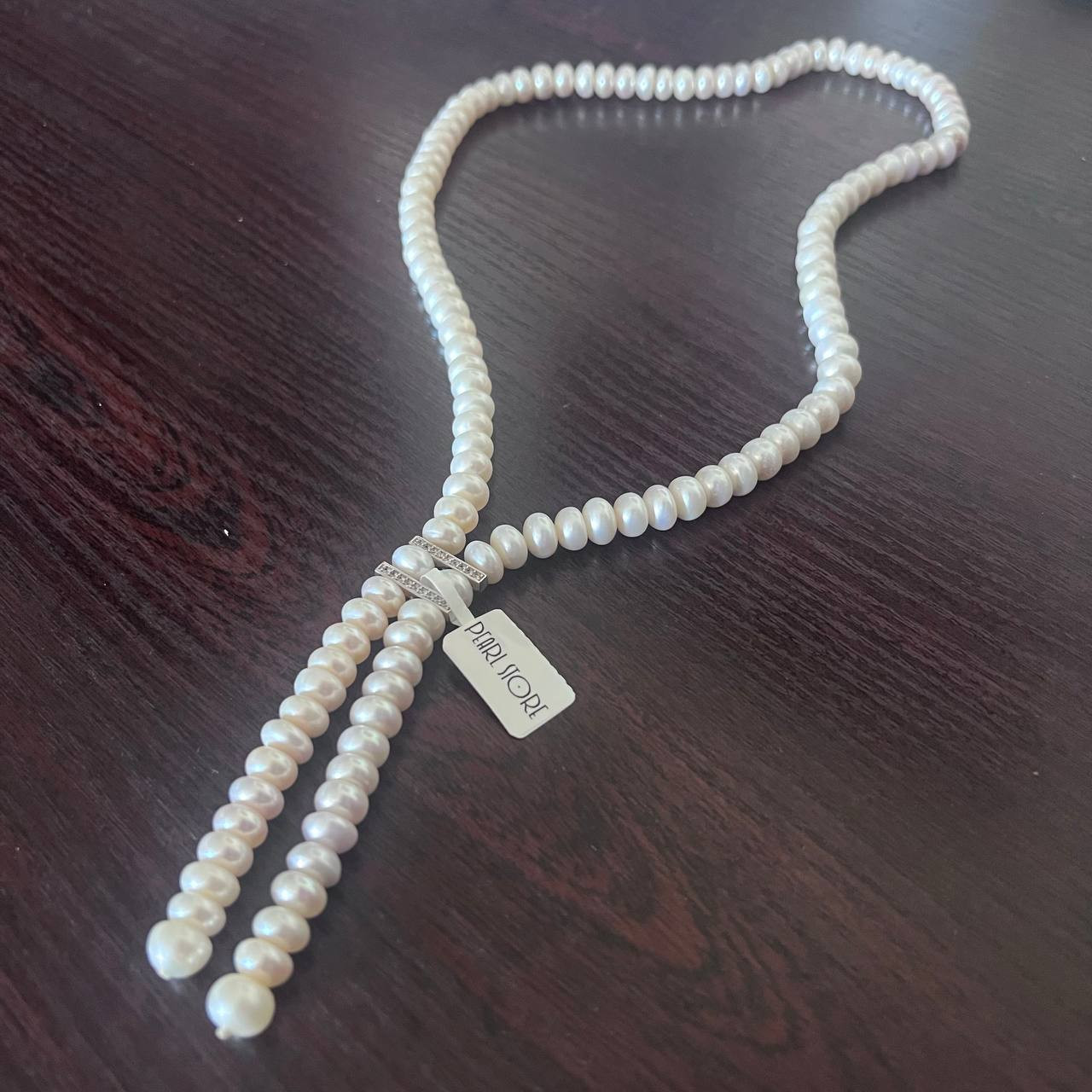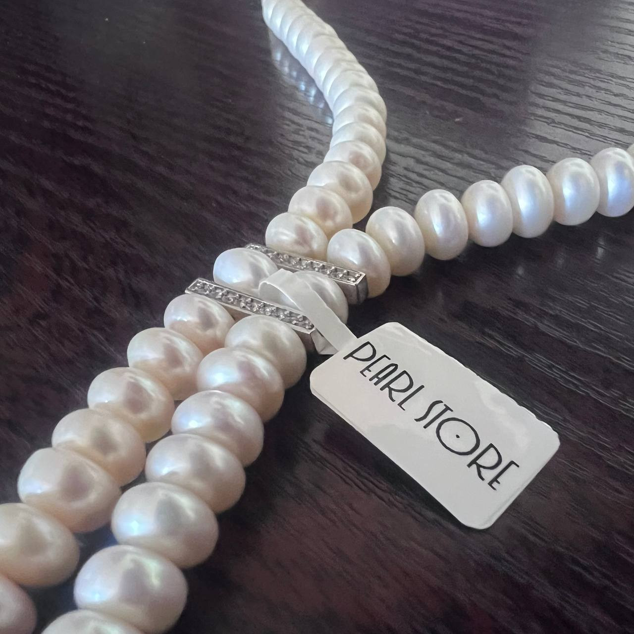 Сотуар с двойной алмазной пряжкой из белого жемччуга формы button
